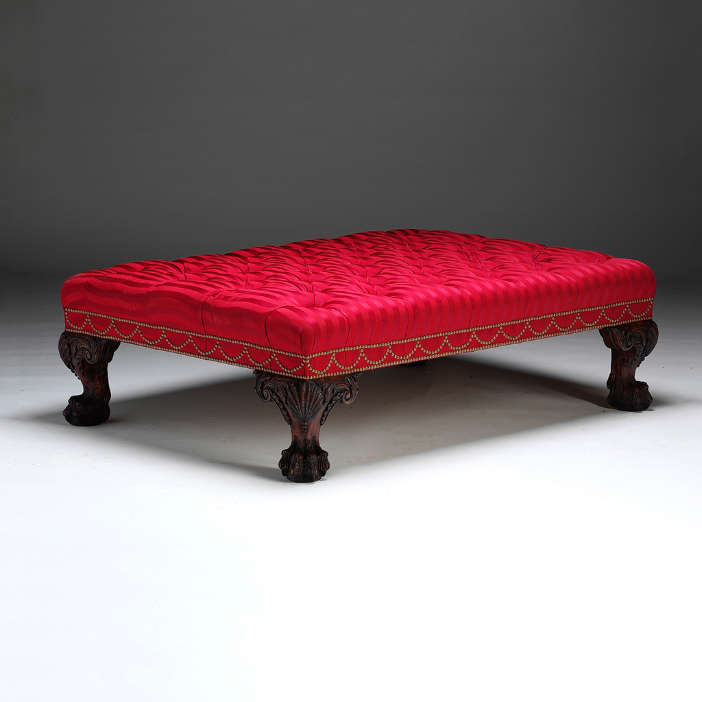 An impressive carved mahogany stool, in the Irish mid 18th Century manner, incorporating shell carved knees and hairy paw feet. To be upholstered in the clients own material.