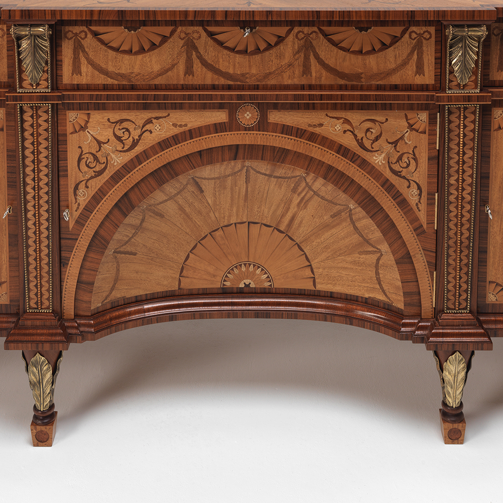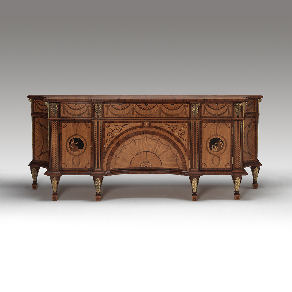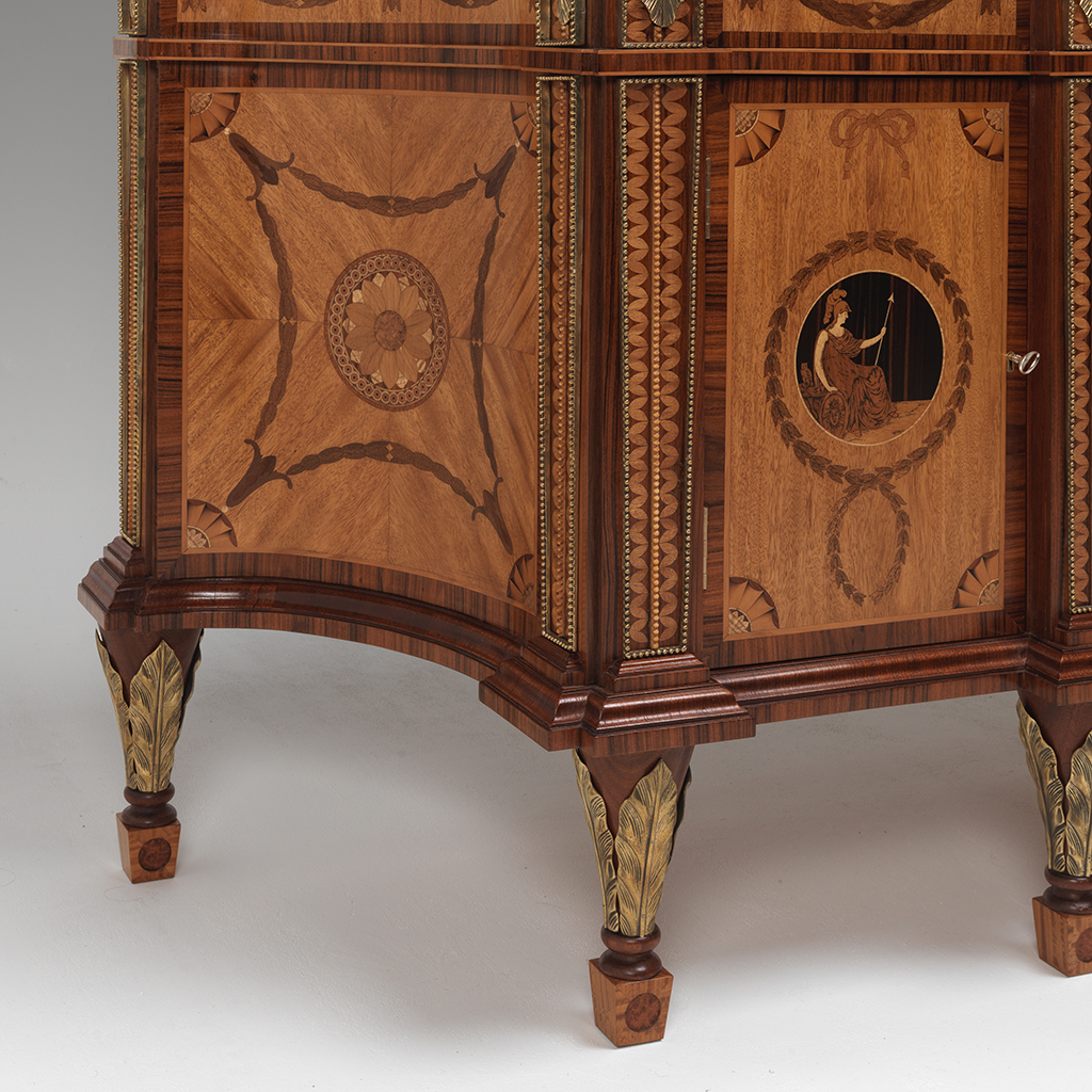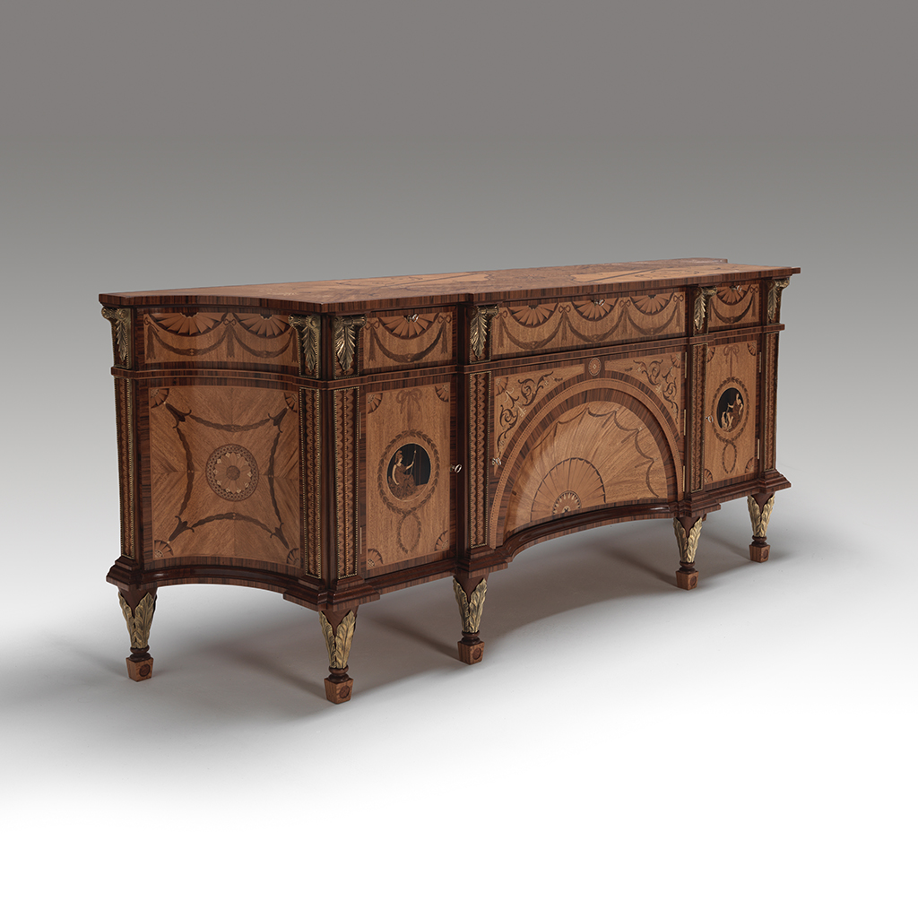 The Diana and Minerva Commode, originally made by Thomas Chippendale for Harewood House. The piece takes its name from the Two Roman Goddesses who have been veneered in fine marquetry roundels flanking the central section.