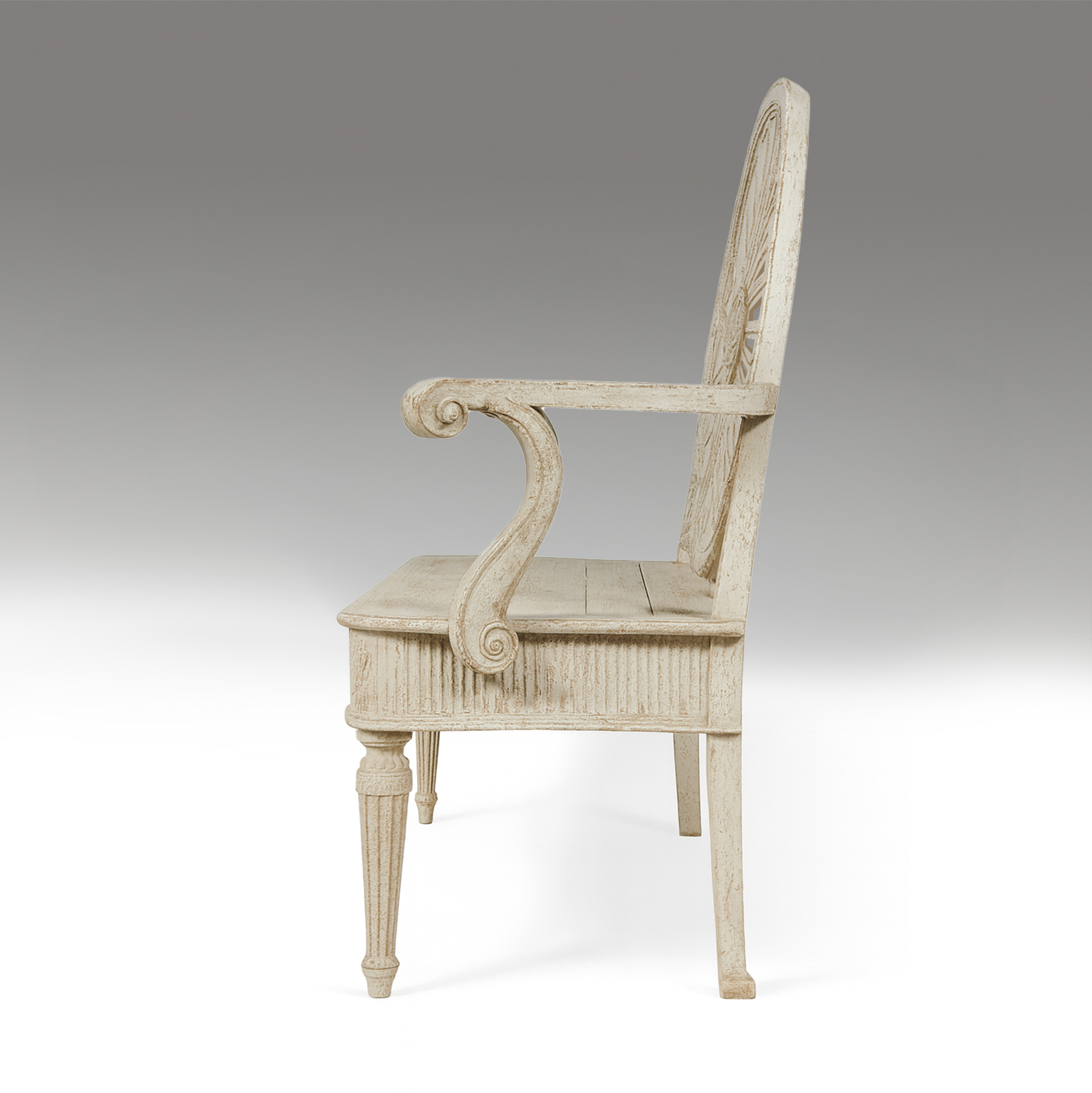 onto a fluted frieze seat rail. The whole supported on turned, carved and fluted legs.